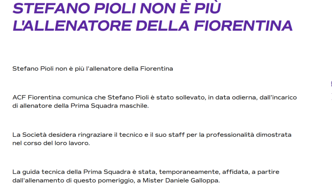 Dopo tre mesi di niente la Fiorentina ha esonerato Pioli.
